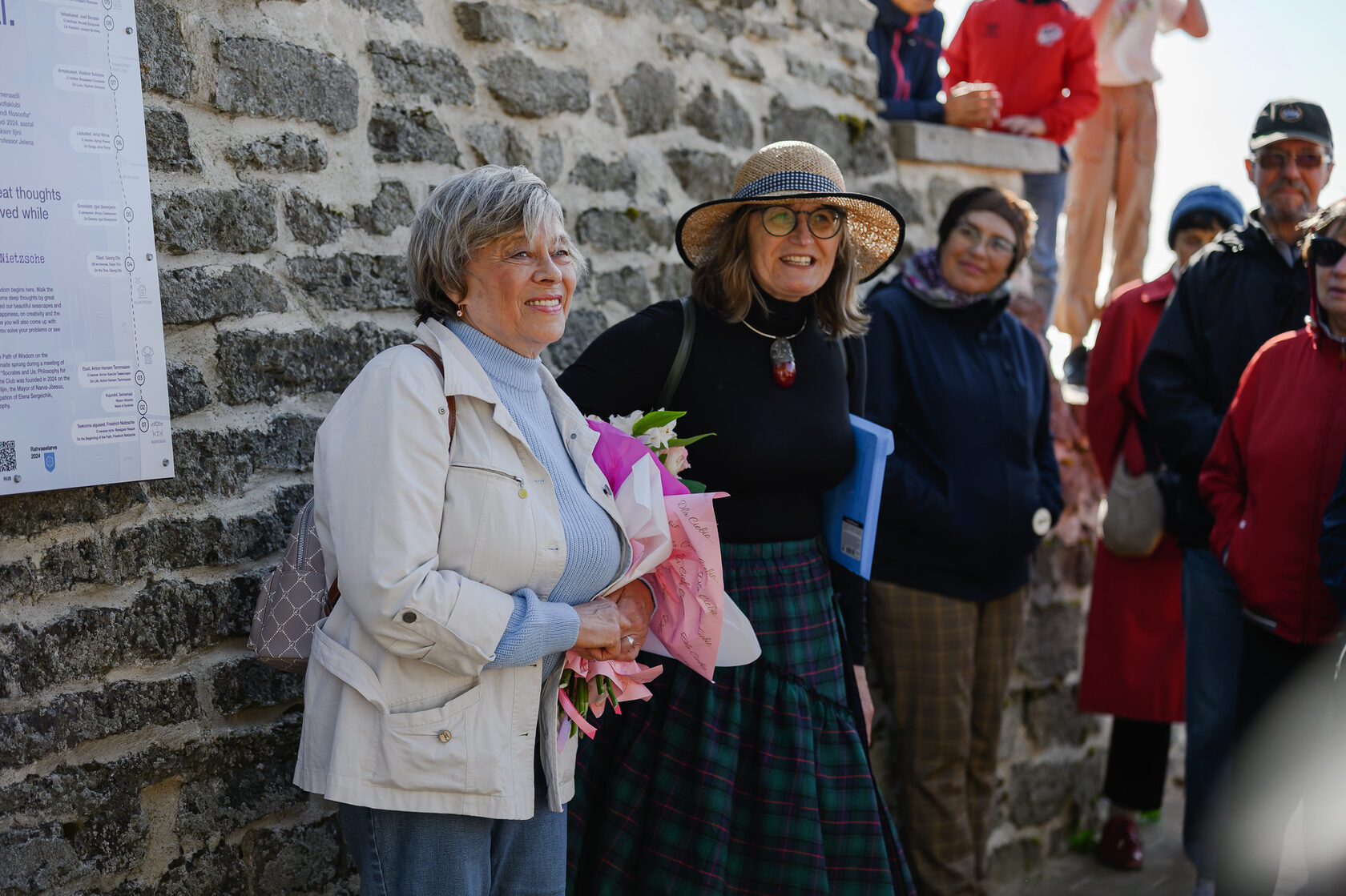 The initiator of the project, philosophy professor and Narva-Jõesuu resident Jelena Sergeitšik, together with art historian Jelena Howarth at the opening of the Wisdom Trail. Photo: Jelizaveta Gross
